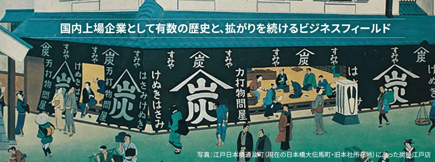 当社の創業は1666(寛文6)年、時は徳川4代将軍・家綱の時代にまで遡ります。炭の卸に始まり打刃物問屋への転業を経、金物卸として日本の産業とくらしを支えてまいりました。