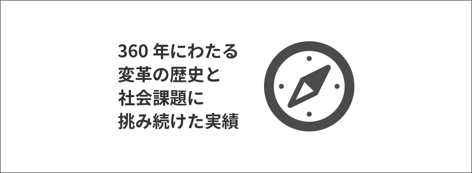 YUASAの歩んだ360年は、社会のニーズに応え続ける変革と、社会課題の解決に挑み続けた歴史でした。 -