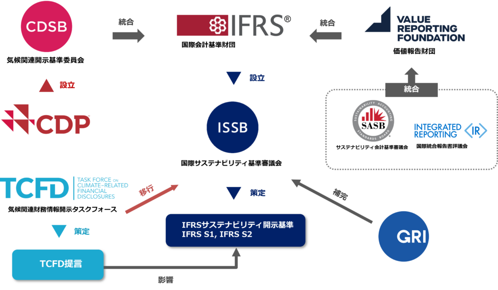 これまで、企業のサステナビリティ情報の開示には、GRI、SASB、CDP、TCFDなど、さまざまな団体や基準が乱立していました。