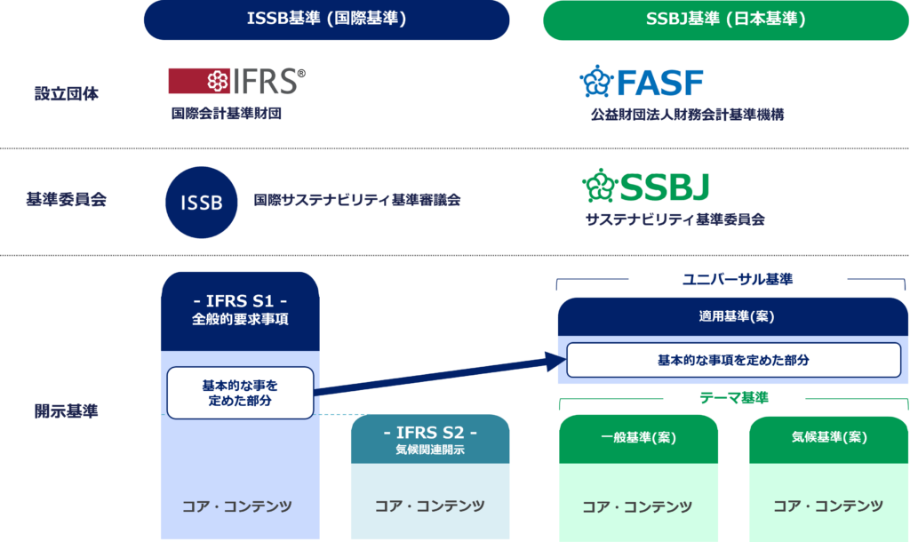 つまり、「世界標準であるISSBの構造(S1/S2)を、日本国内向けに『適用基準』『一般基準』『気候基準』の3つに整理して落とし込んだもの」がSSBJです。