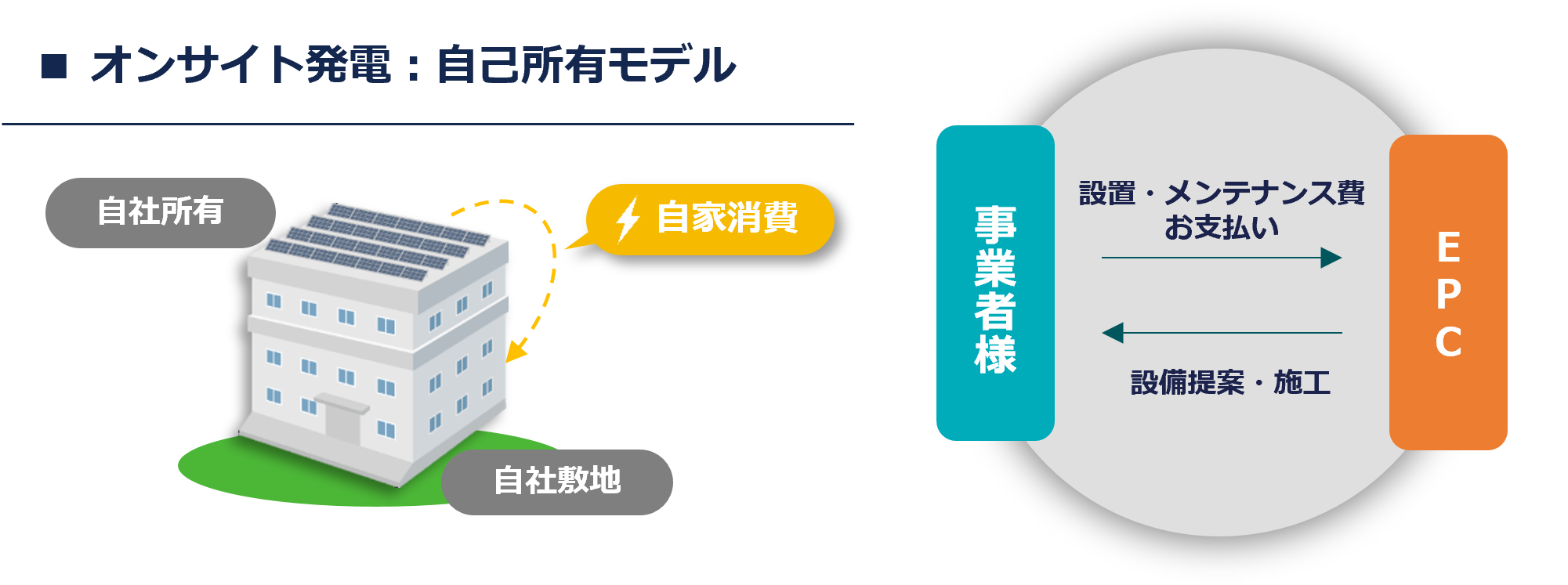 企業が自ら資金を出し、太陽光発電設備を購入・所有するモデルです。